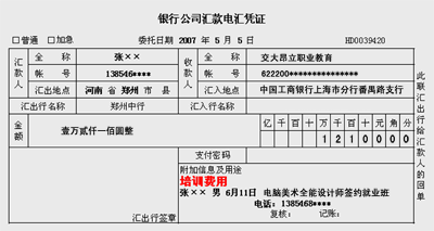 銀行匯款方式同樣適用于外地學員或市郊學員,并在匯款收據上注明學員姓名、學習課程的開課時間、聯系方式等信息后,傳真(上海:021-64480100)至我學院,可確保預留機位。開課前憑本人身份證及匯款收據填寫注冊表及領取聽課證 。找附近的中國工商銀行,,然后認真填寫匯款單(填寫方式可參看下圖)。