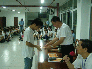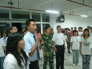 告別聚餐結束后,在食堂大廳內,交大昂立軍訓連舉行了盛大的軍民聯歡晚會暨軍訓總結告別聯歡會,學員們在訓練中用堅強的意志展示了新時代大學生的風貌,在聯歡會中用獨具特色的節目征服了在場的學員與教官觀眾,軍訓連領導不停的夸獎學員們多才多藝的綜合能力。一周的軍訓時間一晃而過,為了紀念這期間發生的點點滴滴,大家用歌聲與舞蹈為軍訓連的生活畫上了圓滿的句號,在最后的集體歌舞“感恩的心”節目中,軍訓教官,生活輔導員,以及昂立學院的領導被同學們簇擁在場地中央,或相擁而泣,或獻花敬禮,或諄諄教導……一幅幅感人的畫面永遠定格在這一刻。
