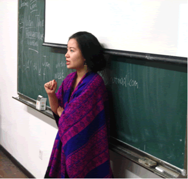 法語項目部主任W(Christine)從小就受音樂的熏陶,07年10月在蘭心劇院開過600個人的歌劇演唱會,言行舉止帶著濃郁的藝術氣質,因此與上戲表演系的同學在交流上也顯得特別投緣。她先從法國的演藝事業、法國文化節、電影說起,再到法國時尚,法國男人和女人……, 將對法國文化的了解款款道來。