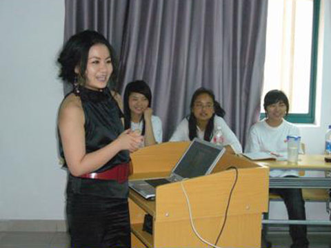 Christine作為昂立法語項目部首席文化講師,曾擔任“Cercle Francophone de Shanghai”文化活動策劃人,總結出了一系列趣味學習方法。Christine向同學們介紹了關于法國藝術的淵源與發展,「亞維儂藝術節」素來有“藝術搖籃”之稱,除了作為國際藝術界的年度重頭大戲festival d’Avignon,每年還有“法國音樂節”等眾多活動隆重上演。法國演藝市場之所以如此興旺,這和政府的大力支持密不可分,每月花18歐就可購得電影月票,原創的新戲可以得到政府的支持和鼓勵,這些都有效地鼓勵著藝術在法國這片熱土生根發芽。