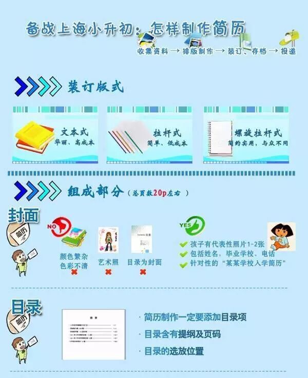 一份優秀的簡歷通常都要經過四個主要步驟:收集資料、排版制作、裝訂存檔、投遞。