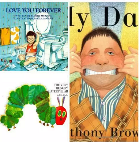 文字較少的兒歌類圖書,或內容簡單的童話書都是合適的選擇。如羅伯特·馬修的《Love You Forever》、安東尼·布朗的精彩繪本《My Dad》和艾瑞克·卡爾的《The Very Hungry Caterpillar》。