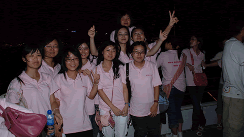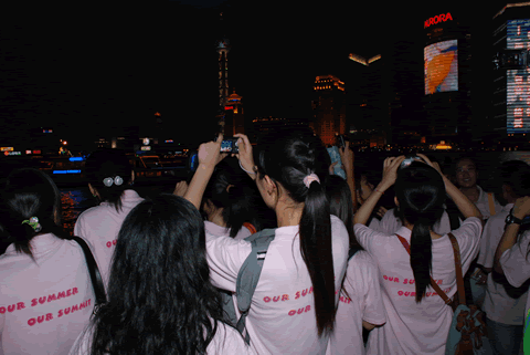 七點整,同學們踏上了熱切期盼的浦江游船。站在船頭,放眼望去,兩岸美景一覽無余。璀燦的東方明珠、聳入云端的金貿大廈、異國風情的建筑群落,在五彩燈光的輝映中越發迷人,令人陶醉?粗矍艾F代都市的美麗景象,同學們異常激動,紛紛拿起相機不停地拍攝著。在如畫的風景下,大家拍下了同學們的笑臉,同時更珍藏下了難忘的時光與友情。