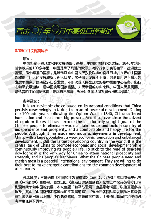 昂立教育 > 項目總攬 > 口譯 > 口譯新聞 > 0709中口漢譯英解析