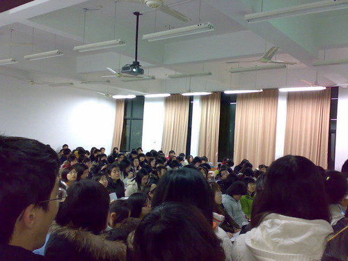 3月4日,昂立口譯考前名師串講來到松江華東政法大學,由昂立教育外語分院院長王曉波老師及《譯述》雜志主編、昂立口譯名師王琛老師主講。講座現場引起火爆旋風,原本500左右座位的教室座無虛席。開講前十分鐘,更是再度涌入一大批慕名而來的學生,教室里能加座的空間全部用完,甚至還有部分學生站著聽完全場!