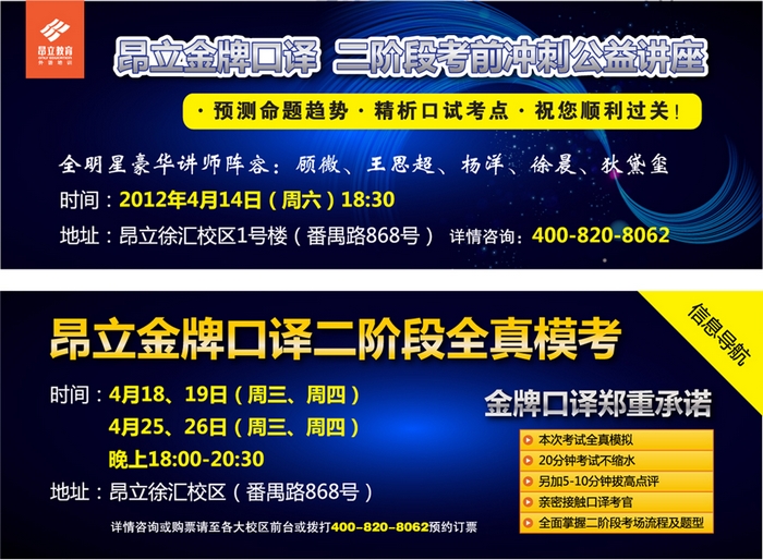 昂立教育 > 項目總攬 > 口譯 > 口譯新聞 > 4.14日口譯二階段講座熱力推薦