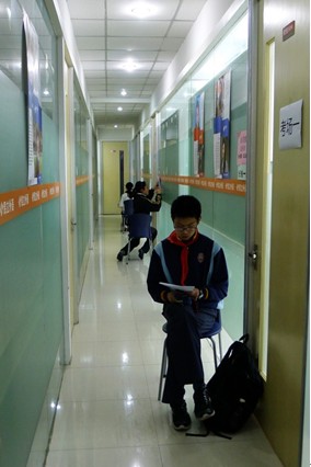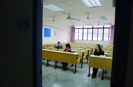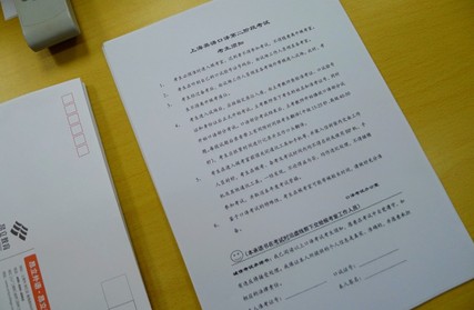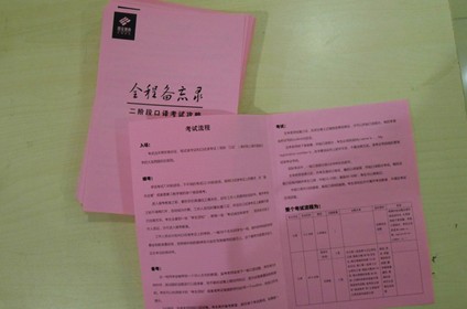 2012年春季昂立口譯二階段?嫉谝粓鲇4月23日18:00正式開始。考生們按次序領取考號在候考室候考。候考室中老師分發考生須知并提醒考生將手機放在信封中封存,一切就和實考時一樣。進入考場之前,考生們將進入備考試,獲得口試?荚嚲硪约肮P記紙,并且有5分鐘的備考時間閱讀試卷做相應的筆記。