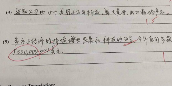 2. 聽譯當中數字問題是非常高頻的考點。在翻譯數字時,同學一定要將數字翻成中文,這是最基本的換算,切不可在考卷上寫很多個“零”。就算是寫對,批卷老師也不可能去幫你一位一位數。另外記錄數字時,數字的相關信息也要有,如果是金額,請記錄單位,如果是漲跌,請記錄幅度或結果