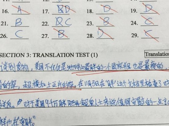 5. 最后,聽譯部分畢竟題型難度較大,總是會有生詞或是關鍵信息沒有及時抓住。這個時候同學應該根據已聽懂的部分,經過上下文推敲,自圓其說,千萬不能在答題紙上留下空白,給批卷老師做填空題。 答題的原則應是:寫在答題紙上的句子或段落一定是完整通順的