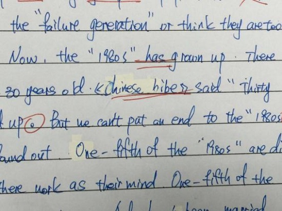 2. 常見詞匯的翻譯問題!80后”翻譯五花八門,有翻譯成the 80s generation, the past 1980s generation 像這一類的單詞各位平時需要認真積累,在關鍵時候一定會派上用場的。還有Big Mac “巨無霸”,很多同學譯成了“麥當勞”,寫成了“巨無ba”,“論語”翻譯成“Lunyu”,“Confucius”“Chinese bibe”等, “垮掉的一代”很多同學譯為declining generation/the broken generation/the broken down generation, 類似的詞匯各位同學需要通過大量閱讀來積累