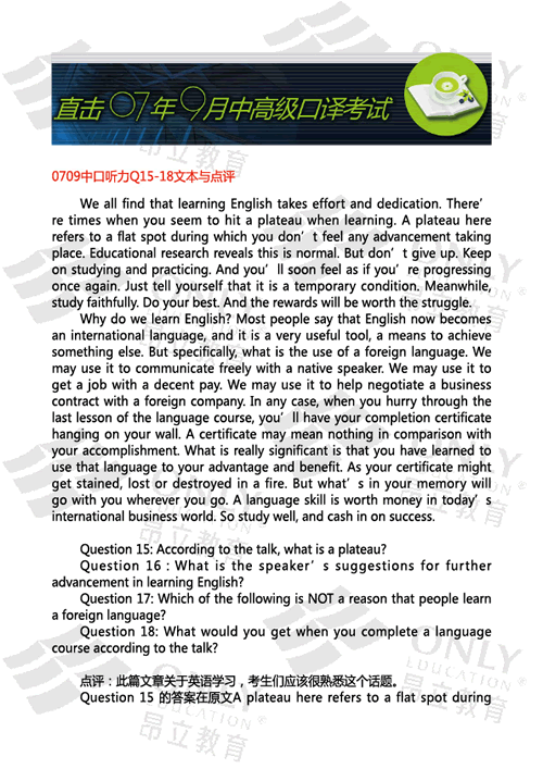 0709中口聽力Q15-18文本與點評 發表時間:2007-09-17