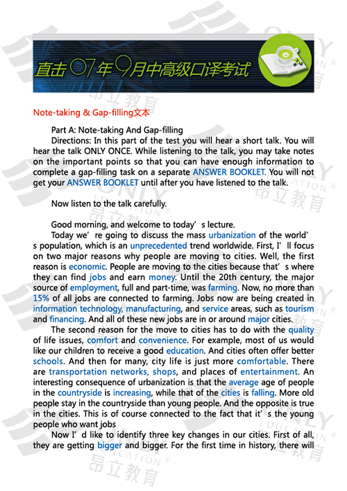 Note-taking & Gap-filling文本與答案 發表時間:2007-09-16