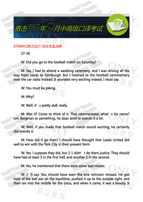 中口聽力Q27-30文本及點評 發表時間:2007-09-16