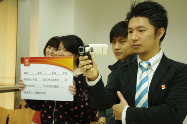 當學生們進入到錄制現場看到專業的攝影設備時,著實讓這些新概念班級“尖子生”們又緊張,又興奮。伴隨著攝影師的倒計時聲,比賽開始了,有的學生因為緊張而靦腆了起來,繼而變得支支吾吾,這時,校區的工作人員便會停下攝影,給孩子鼓勵打氣,提供充足的時間讓孩子調整自己的狀態,然后再進行新一輪的拍攝,直至順利完成演講。