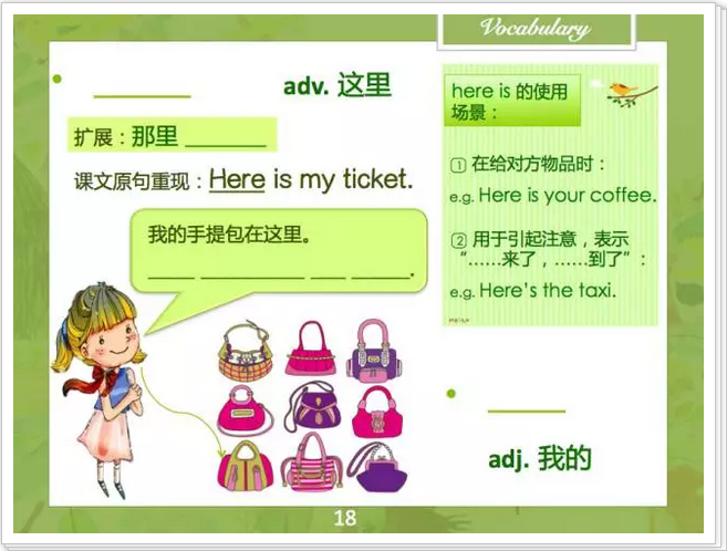 預知完整的故事如何,且先聽老師分解一些新單詞。單詞的部分我們不僅會帶讀、糾音還會讓孩子練到拼寫和翻譯,并且告訴他們一些句型的使用場景。