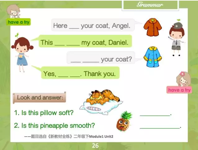 熟悉新Ⅰ教材的人們都知道新Ⅰ課本有奇偶數課之分,那么奇數課是主要的課文部分,而偶數課則是對課文中出現的重點句型和語法的操練,孩子們何不趁著這個機會趕緊練練口語,和小伙伴之間進行愉快的對話呢?