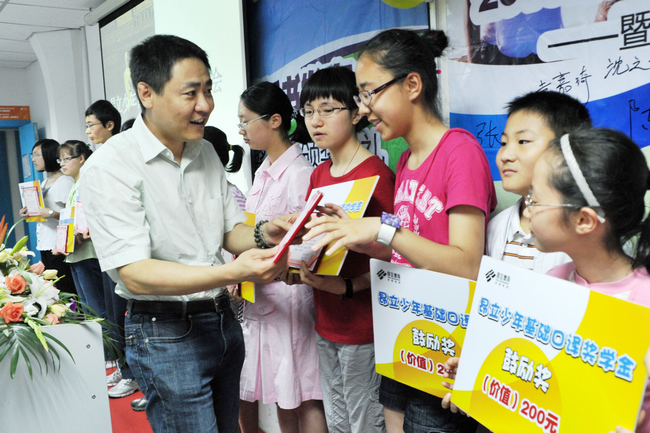 共同歡慶,分享喜悅 慶功會上,除了獲得獎學金的學生與家長外,還有許多慕名而來的孩子們,從中感受榜樣的力量,激發起學習的熱情。 在孩子們當中,一位稚氣的小女孩受大到大家的關注。據了解,她叫黃中祺,現讀四年級,在基口考試中取得了126分的成績,成為此次昂立獎學金學員中的一員,榮幸得獲得昂立少口鼓勵獎?吹胶⒆映晒^關基口,孩子的媽媽開心地說,女兒特別喜歡英語,從小學一年級開始就在昂立學習通用星級英語、少年新概念,基礎口譯,由于特別喜歡這里的老師,比如教自己基口的顧建花老師,上課特別向往,感覺在這里學習成為了一種快樂的體驗。而且學習基礎口譯后,發現孩子的視野開闊了,以往對于社會熱點問題,政治、經濟、教育等各領域的熱點問題并不關注,學習基口后,無論是看新聞聯播,還是報刊雜志,都會主動提出一些問題,表現出極大的關注與興趣。對于當初小學生是否適合學習基口的所存顧慮一下子消除了,而且驚喜地發現孩子的知識面得到了快速地拓展。對于今后的英語學習,孩子和家長都充滿期待,決定接下來學習昂立少年新概念三,為今后挑戰中口做好各項基本功的全面訓練。