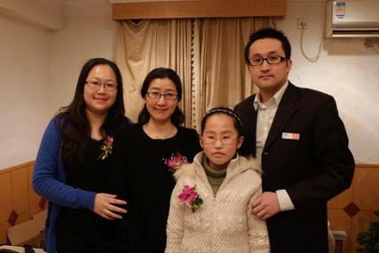 高分學員陳昕玥和王曉波、朱琦、楊鈺老師合影