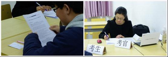 之后,考生被安排進入考場進行一對一的模擬考試?脊僖贿叿乓簦贿厡P牡貙忌目荚嚽闆r進行記錄。考試結束之后,考官對每一個部分的考試分數進行分析,給予考生一個總評,并且指出考生存在的問題,應在未來的2周時間內著重準備。