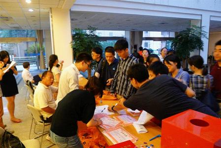 簽到處學員和家長在領取鼓勵獎獎學金獎狀