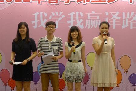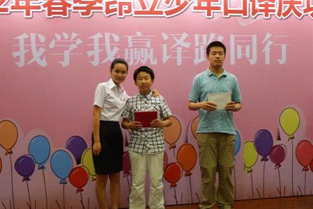 游戲之后,頒發的是二等獎學金。獲獎者中有一位高中學生石嘉禾,他在2012年中級口譯考試中閱讀部分獲得了56分的超高成績。他為大家分享了自己英語學習的經驗。他說:以前在學校里讀英語,我的成績并不突出,后來參加了昂立的口譯培訓,覺得門門課都有收獲,昂立的老師教會我學習的方法,讓我逐漸愛上了英語閱讀。石嘉禾同學還呼吁:學習英語要趁早,像我這樣的高中生課業繁忙,學英語的時間都會被其他功課擠掉,所以建議家長讓孩子早點到昂立培訓,越早越好。主持人笑言石嘉禾同學的發言更像是家長發言。