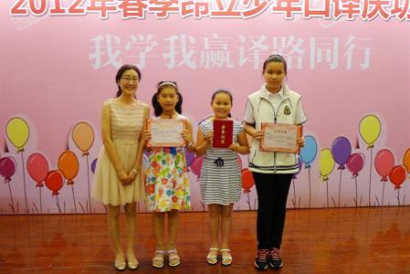 作為青少年培優專家,昂立少年口譯在短短4年時間內,培養了近千名少年口譯英才,基礎口譯、中級口譯考試通過率均在業內拔得頭籌。幾年來昂立少年口譯人才輩出,涌現出一批又一批口譯高分,成績更是屢創新高。2012年上半年口譯考試中,王嘉驥同學以181.5的超高成績打破歷年基口高分紀錄,而郭雨彤小朋友更以預初的年齡在高口考試中獲得225.5分的優異成績。昂立外語為擁有這些杰出的學員感到驕傲,為祝賀昂立口譯學員取得如此優異的成績,69日晚18:30昂立少年口譯慶功會在徐匯交大浩然科技大樓一樓報告廳隆重舉行。近300名昂立高分學員及學生家長蒞臨現場,參與這一年一度的精彩盛事。
