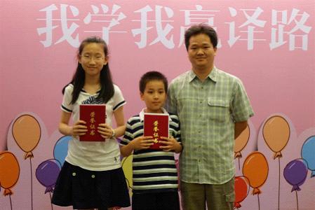 表演之后,到了獎學金頒發的壓軸環節。獲得昂立外語少年口譯特等獎學金的是王嘉驥和郭雨彤同學。王嘉驥同學的媽媽特別與在座的家長們分享了培養孩子的心得,她說:孩子這次取得這樣的好成績需要感謝兩位老師。第一位是興趣,俗話說興趣是最好的老師。為了培養孩子對英語的興趣,作為英語老師的我一直都讓他聽和看一些英語故事。而另一位更要感謝的老師就是昂立,在昂立的基口學習中,孩子拓寬了視野,學到了這個年齡段所接觸不到的知識。