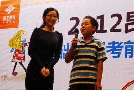 本次基口峰會的現場,昂立特別邀請了2012年上半年基礎口譯考試高分學員王嘉驥同學到場。王嘉驥同學在上半年的考試中獲得了181.5分的高分,當時,他還只是一個小學四年級的學生。楊鈺老師對王嘉驥進行了簡短的采訪,現場的家長對于王同學以小小年紀獲得如此高分感到無比驚嘆。此后,王嘉驥同學的媽媽就她對孩子英語學習的培養理念作了簡短的分享,贏得現場家長的陣陣掌聲。