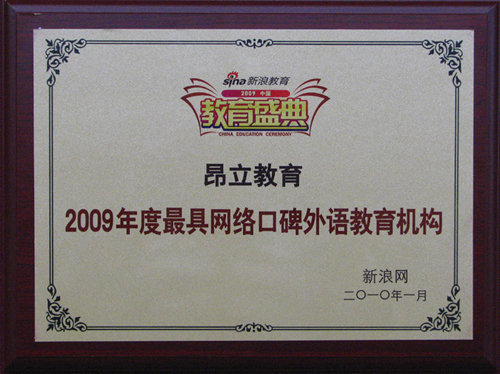 昂立教育 > 項目總攬 > 外語托福雅思 > 托福新聞中心 > 2009年度昂立教育所獲榮譽證書