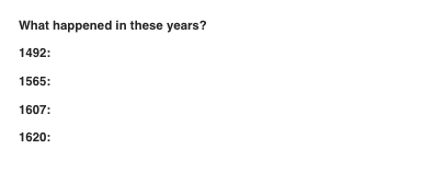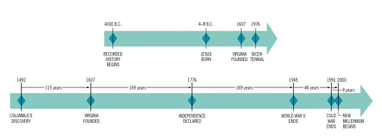 第二行中我們看到的是1492年哥倫布發現新大陸為標志的起點,和后面所涉及到的重要時間點。