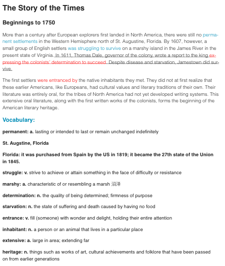 本周是藍思6級的歷史類話題的一篇,時間跨度為美國初期至1750年。