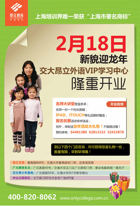 昂立教育 > 項目總攬 > 外語vip中心 > 外語vip新聞 > 2月18日昂立外語VIP學習中心 隆重開業
