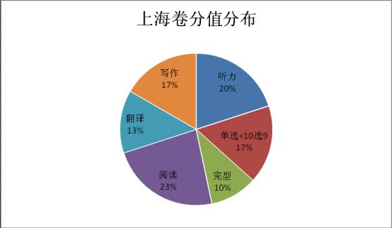 有些省份的聽力成績不計入高考總分,這種情況我們暫不考慮,從卷面分數來看,新課標卷和上海卷在分值分配上有相同之處,也有各自的特點。