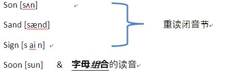 知:元音字母a,e,i(y),o,u讀閉(已音字母尾的重)中分別/æ//e//i//ɔ//ʌ/。